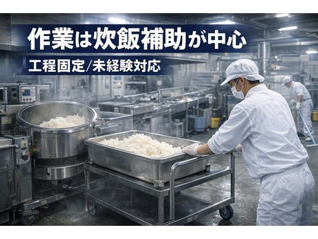 炊飯補助が中心のシンプル作業で、未経験から月収24万円以上が目指せます。