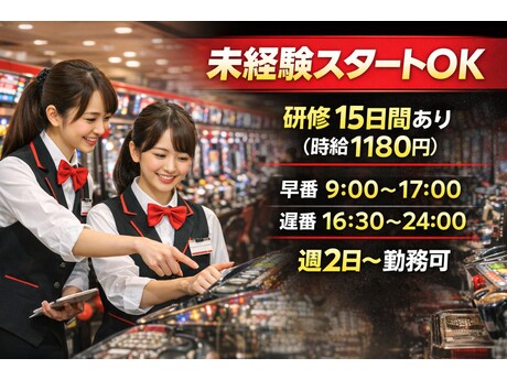 パチンコ店ホールスタッフ/時給1200円~1500円/週2日OK/未経験可/大阪市東淀川区