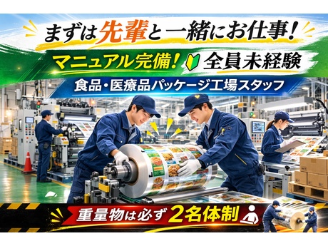 【土日祝休み/時給1500円】食品・医薬品パッケージの印刷ライン補助スタッフ(交替制・未経験可)